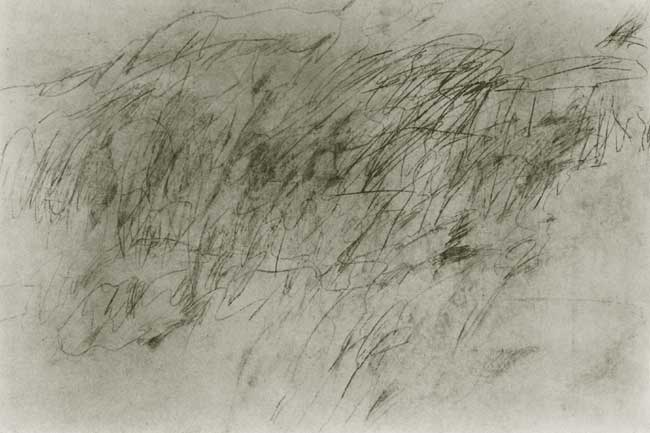 Megdöbbenteni azért megdöbbentett. Ahelyett, hogy nyersebb szavakkal minõsíteném a minõsíthetetlent, eltûnõdöm csöndben a vizuális mûvészetnek nem csupán szavakkal-esedékes-bemutatása néminemû reménytelenjén (mindnyájan hódolunk e valõrnek, Ad Reinhardt legyen a talpán, aki akár kiáltványszerûséget is mai hitellel tud adni megannyi hasonló - épp ez az, az õ szövegeinek elemi, mégis szentül mókás elemiségéhez nem hasonlók! - után), és azt is hozzáteszem, már beírva, hogy a legszebb Twombly-méltatások egyike is, épp a mûvész tollából, mintegy (lelke leképzésébõl, lelkedzésébõl, na szó szerint nem), igen nagy hangzatossággal és "lírai meghatódással", közhelyes általánossággal zárul, valamint azt sem találom különösen meggyõzõnek, hogy a tao tömör és klasszikus, könyékszaggató meghatározását biggyessze oda önmagára adó mûtörténész egy másképp nem is rossz Twombly-ismertetés végére. Ismétlem, ilyen leheletnyi értékekbõl nagy elemi erõvé "rendezõdõ" mûvészettel a szakma általában (jól láthatóan/szokásosan) baj(ok)ban van. Hagyjuk is ezt ott, ahol. ***